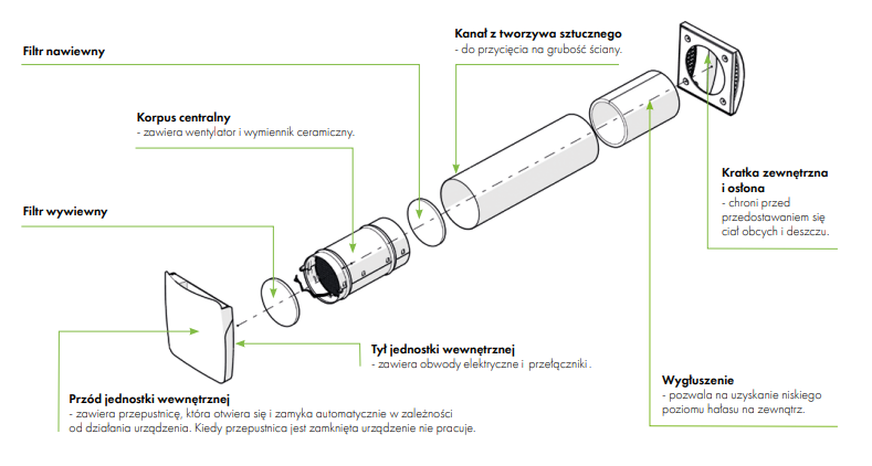 Szybka i prosta instalacja w 1 dzień bez remontu - wystarczy otwór w ścianie i doprowadzenie prądu.