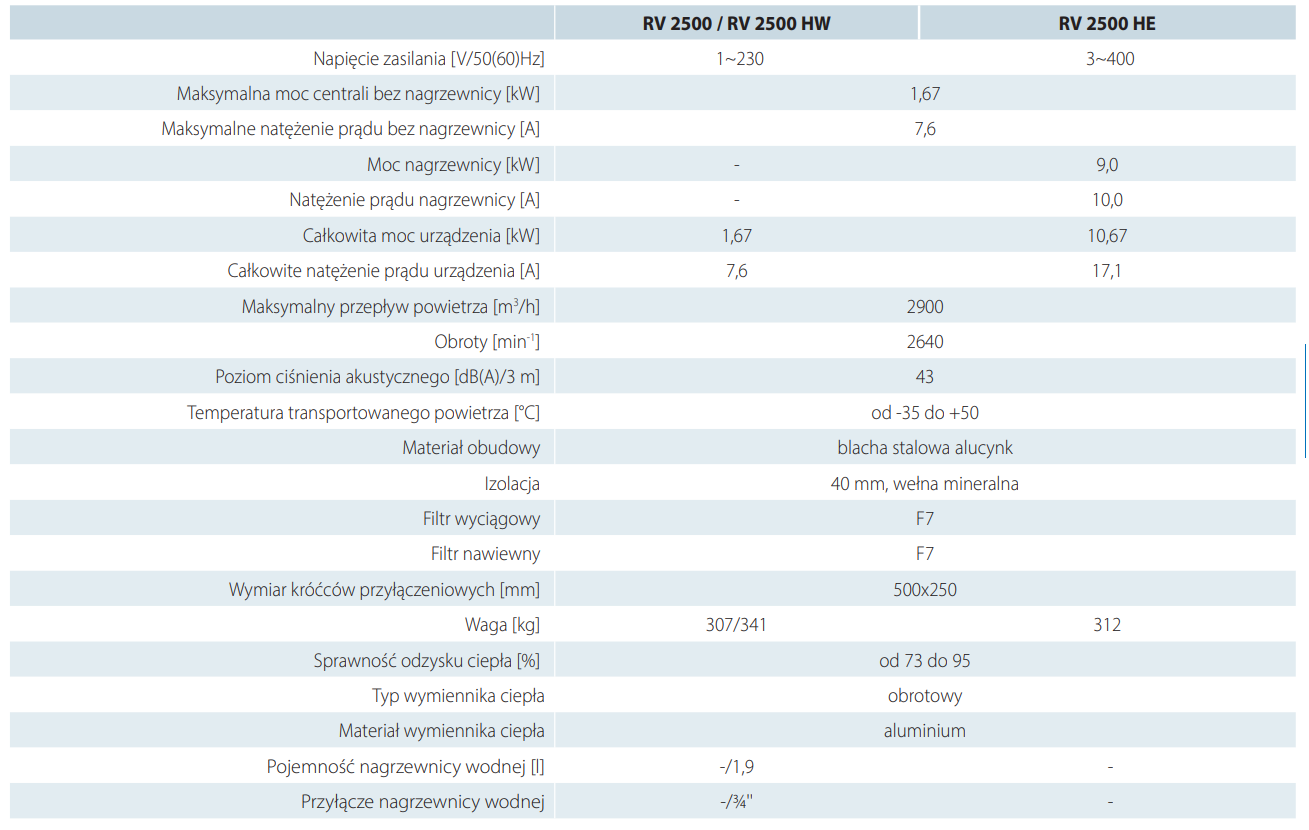 RV HE modele są wyposażone w nagrzewnicę elektryczną wtórną.