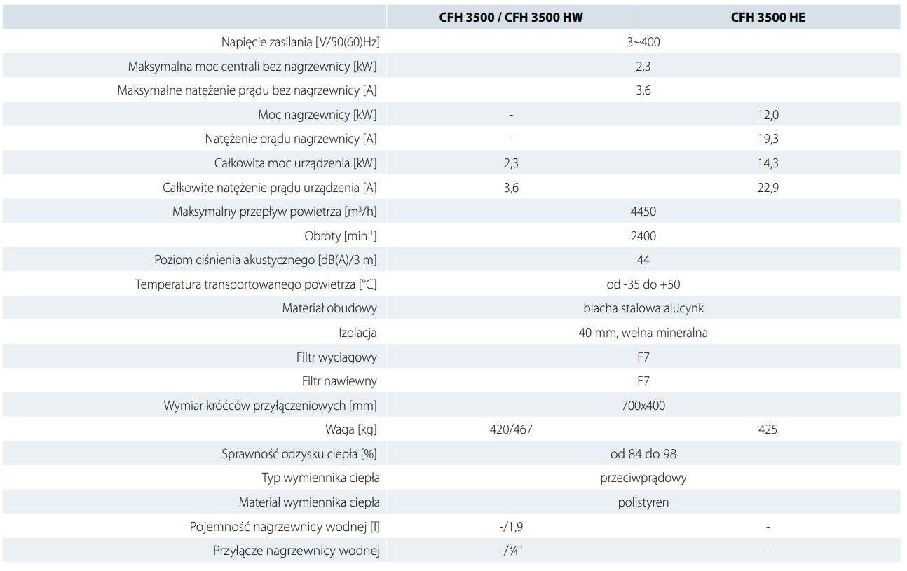 CFH HE modele są wyposażone w nagrzewnicę elektryczną wtórną.