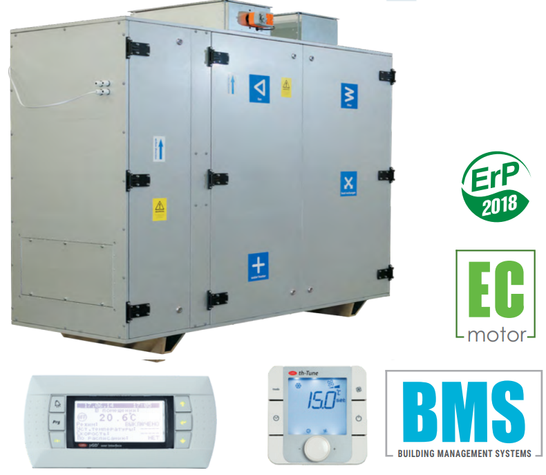 W centralach zastosowano wentylatory z silnikami komutowanymi elektronicznie typu EC, z zewnętrznym wirnikiem i łopatkami zagiętymi do tyłu. Tego typu silniki są obecnie najbardziej innowacyjnym rozwiązaniem w dziedzinie oszczędzania energii elektrycznej. Zintegrowany system elektroniki w silnikach EC umożliwia płynną regulację w pełnym zakresie prędkości obrotowej wentylatora przy zachowaniu wysokiej sprawności. Silniki komutowane elektronicznie osiągają sprawność do 90%. Zastosowanie silników EC pozwoliło zmniejszyć zużycie energii elektrycznej od 1,5 do 3 razy, przy zachowaniu wysokiej sprawności oraz niskiego poziomu hałasu.