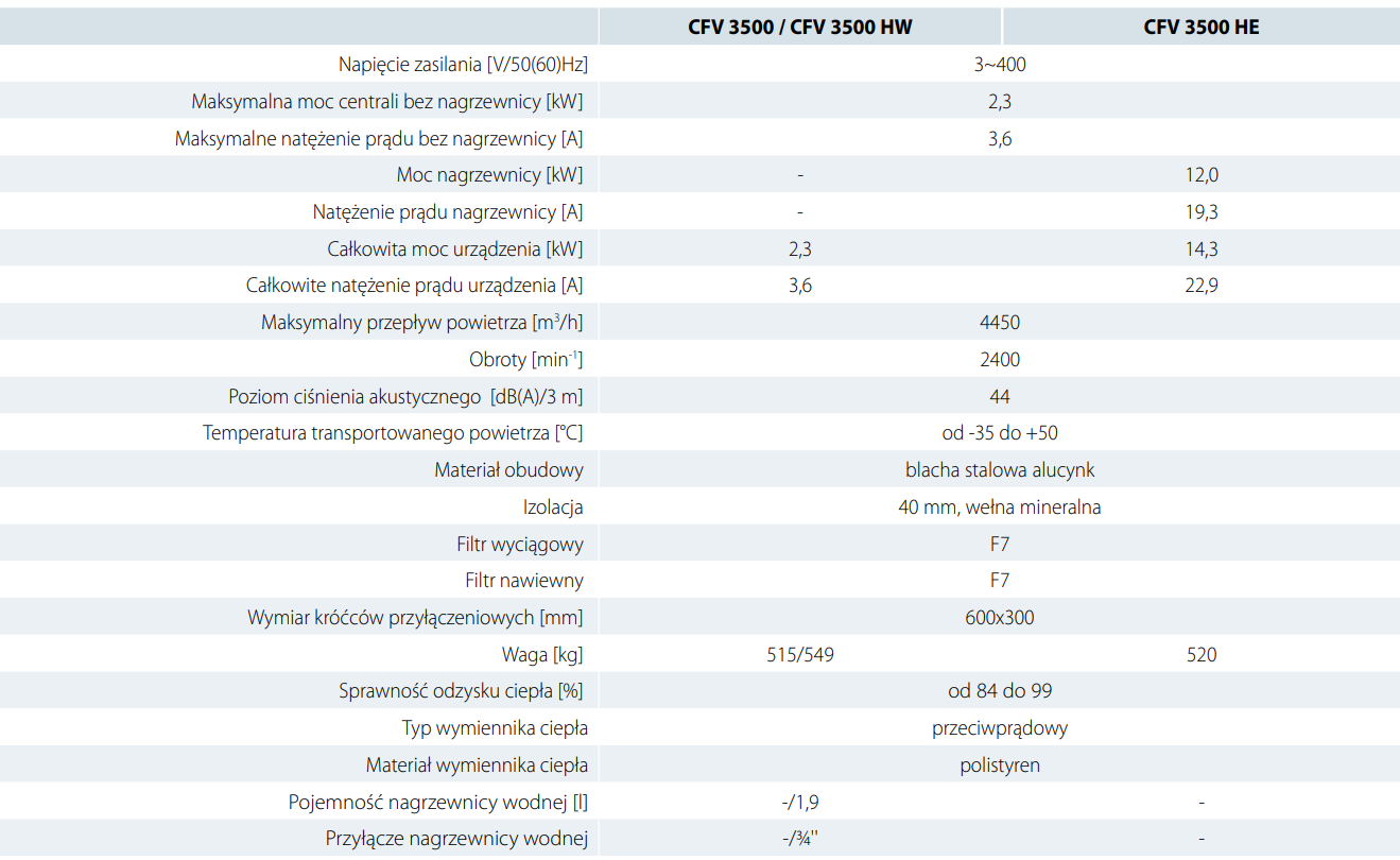 CFV HE modele są wyposażone w nagrzewnicę elektryczną wtórną.