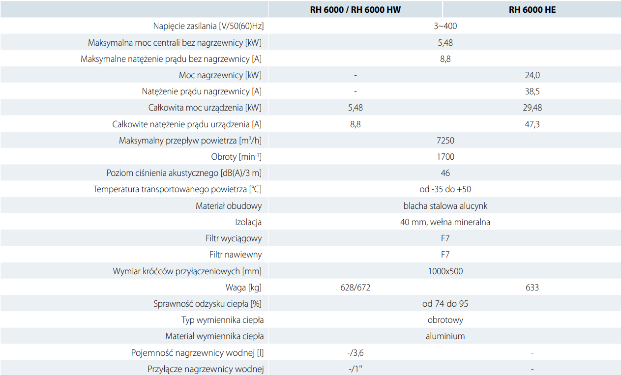 RH modele bez wbudowanej nagrzewnicy.