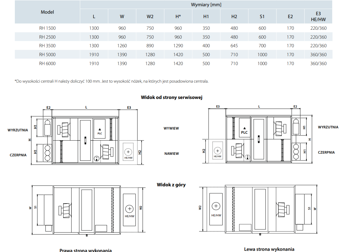 RH modele bez wbudowanej nagrzewnicy.