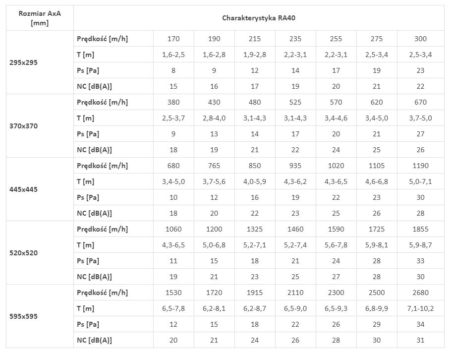 Nawiewniki (RA40) są przeznaczone do dostarczania chłodnego lub ciepłego powietrza.