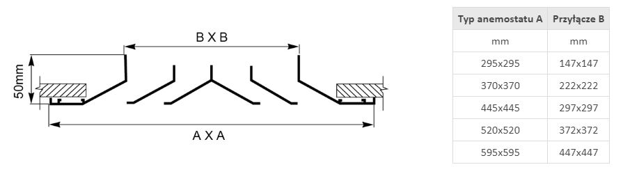 Anemostat kwadratowy RA40 370 x 370