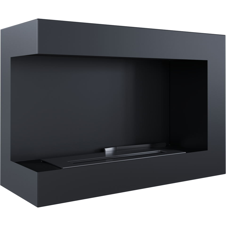 Horyzontalny, narożny biokominek otwarty na lewą stronę jest idealnym rozwiązaniem do zabudowy we wnęce.