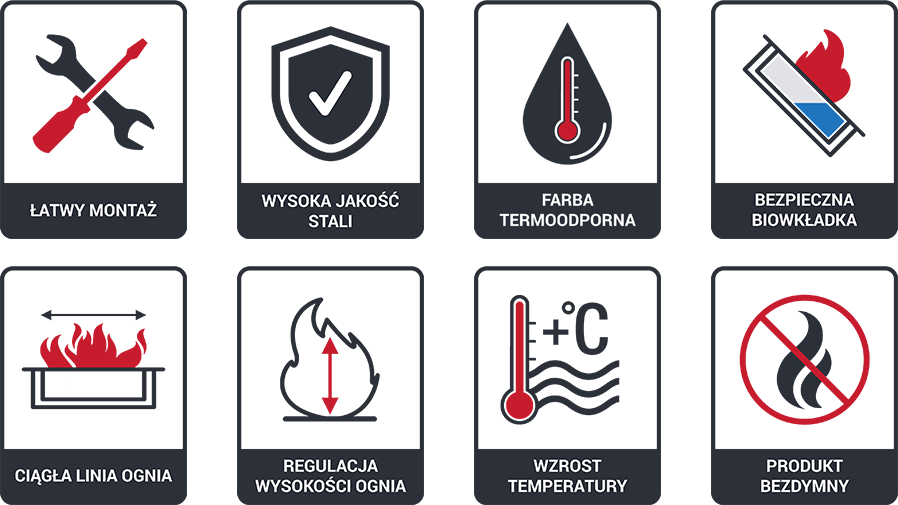 Biokominki wykonane są z wysokiej jakości materiałów. Proces produkcji realizowany jest według światowych standardów, co potwierdza uzyskanie certyfikatu ISO 9001:2015.