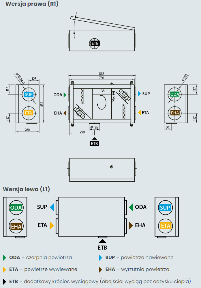 Centrale wentylacyjne z odzyskiem ciepła przeznaczone do budownictwa mieszkaniowego.