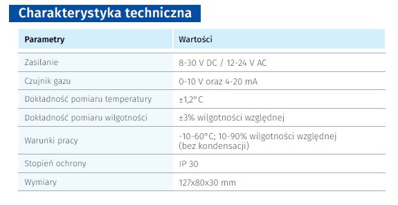 - Czujnik jest przeznaczony do montażu natynkowego lub w puszcze montażowej w pomieszczeniu. Urządzenie jest zasilane napięciem 24 V AC/DC.