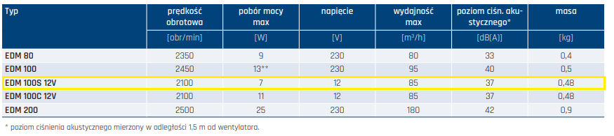 EDM 100S 12V - wentylator w wersji standard na bezpieczne napięcie