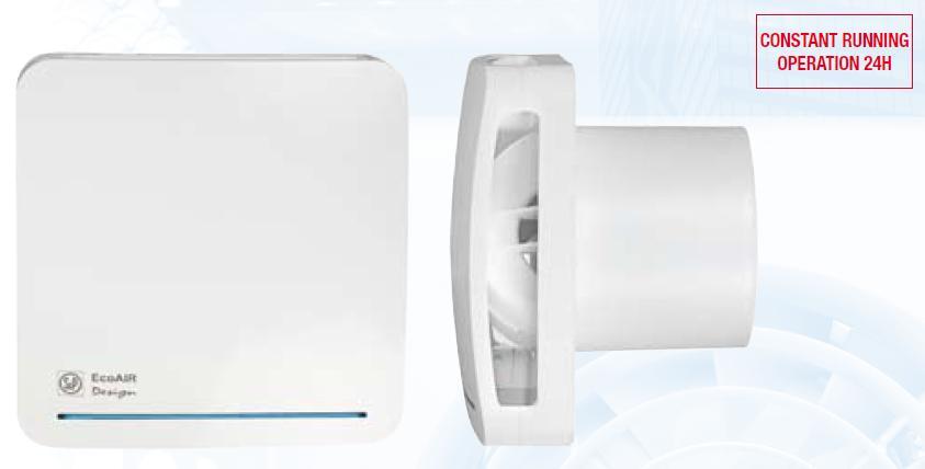 Wentylatory ECOAIR przeznaczone są do wentylacji pomieszczeń małej i średniej kubatury (WC, łazienki, kuchnie, małe pomieszczenia biurowe itp.), szczególnie tam gdzie wentylator powinien być uruchomiony na stałe. Mogą być montowane w ścianie lub w suficie. Wentylator wyposażony jest w czujnik wilgoci oraz opóźnienie czasowe.