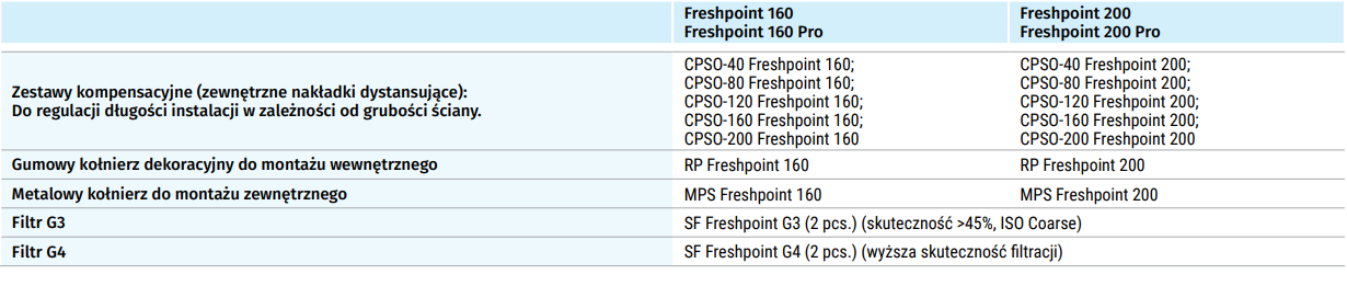 Akcesoria – kompatybilne z urządzeniami Freshpoint 160 / 200: