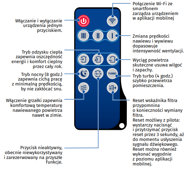- Zapewnia zrównoważoną wentylację pomieszczenia oraz wysoki komfort cieplny przez cały rok.