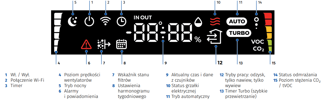 - Nowoczesny ekran informuje o wszystkich kluczowych parametrach pracy urządzenia.