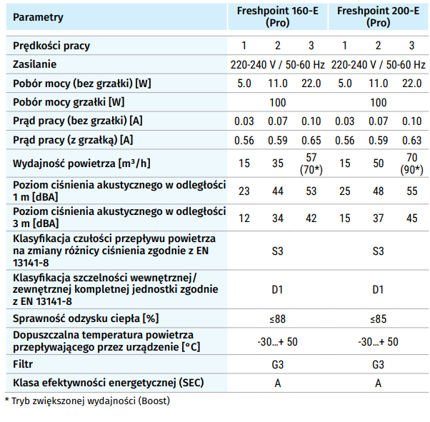 Freshpoint 160-E PRO - ściana 200*-440mm jednostka wentylacji decentralnej z wymiennikiem miedzianym , matą grzewczą WIFI, czujnikiem wilgotności, CO2 oraz VOC