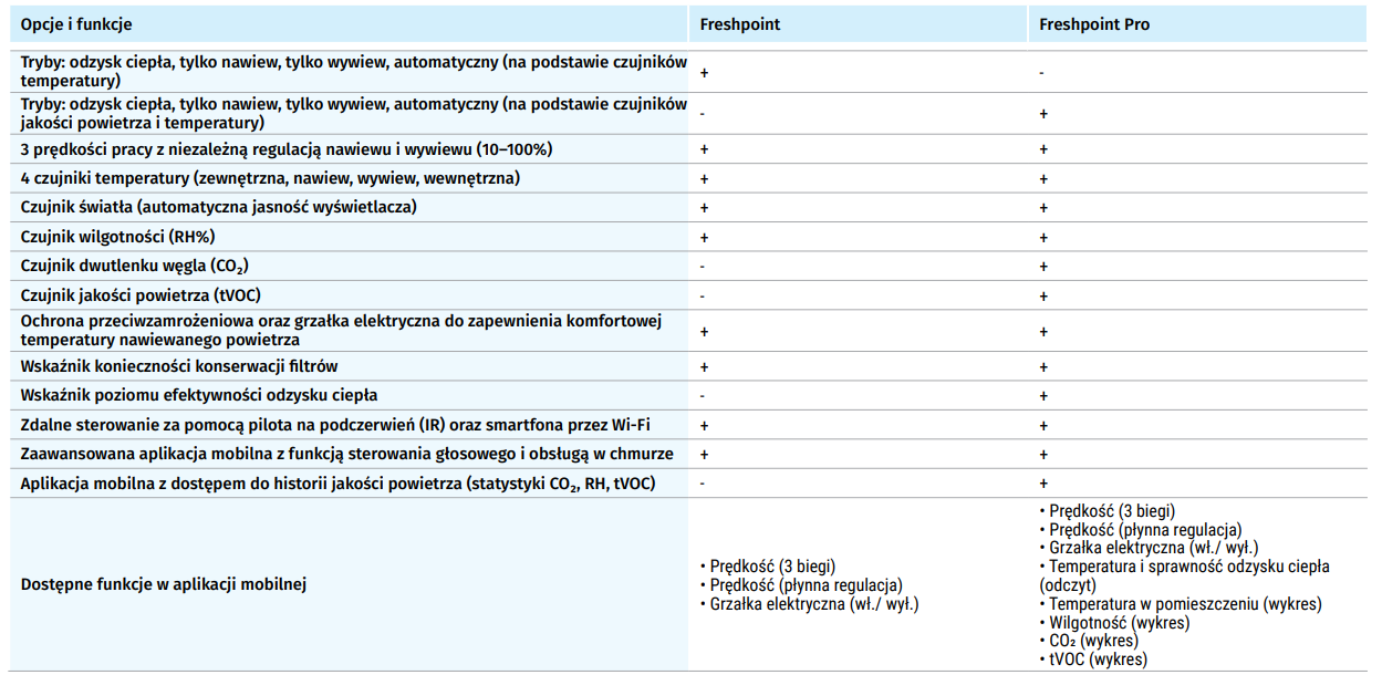DOSTĘPNE WERSJE I FUNKCJE URZĄDZENIA FRESHPOINT: