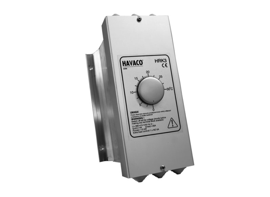 HRK 3 to mikroprocesorowy regulator moccy nagrzewnicy elektrycznej. Nie należy stosować regulatora HRK3 do regulacji pracy silników elektrycznych oraz oświetlenia. HRK 3 pozwala na regulację nagrzewnicy o mocy do 15kW. Dodatkowo regulator posiada wyjście przekaźnikowe ze stycznikiem, pozwalające na podłączenie obciążenia 12 kW. Całkowite dopuszczalne obciążenie regulatora wynosi 27 kW.