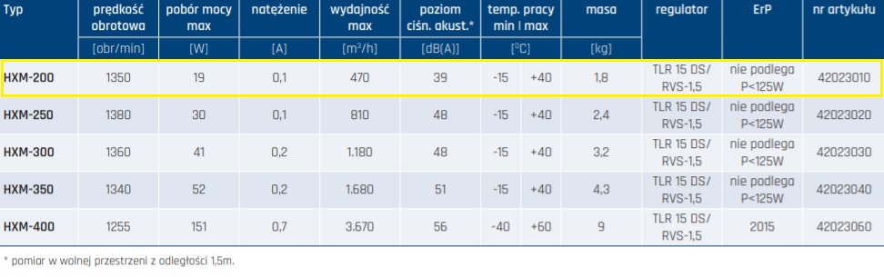 Wentylator HXM 200:
