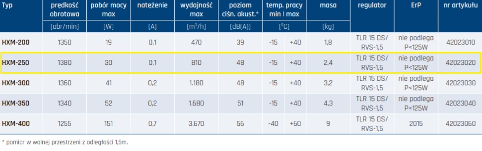 Wentylator HXM 250: