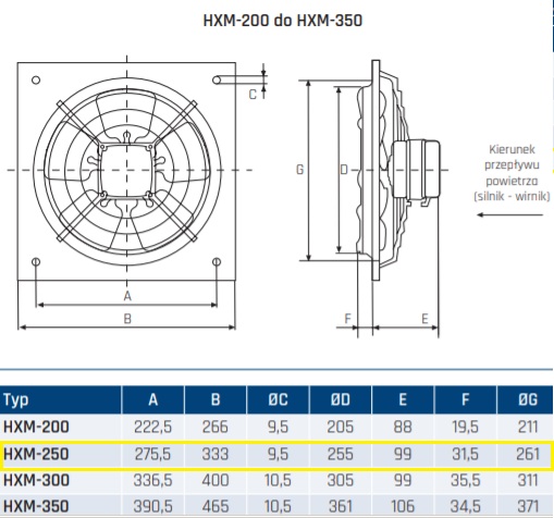 HXM 250 - Wentylator osiowy
