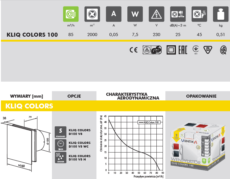 - W wersji WC można zaprogramować działanie opóźnienia czasowego (wbudowany timer umożliwia pracę wentylatora od 2 do 30 minut po jego wyłączeniu).