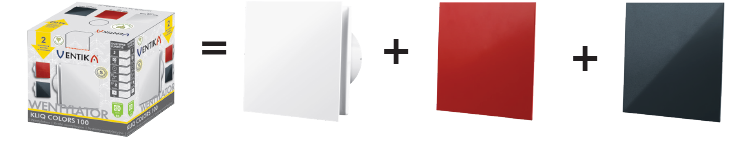 - Wentylator z panelem dekoracyjnym w kolorze białym + dodatkowe 2 panele wymienne w kolorze czerwonym
