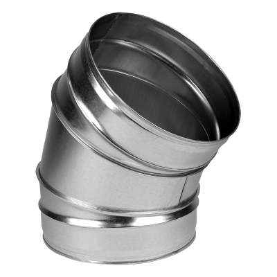 Kolano okrągłe z blachy ocynkowanej, segmentowe o średnicy 315 mm, kąt 45 stopni.