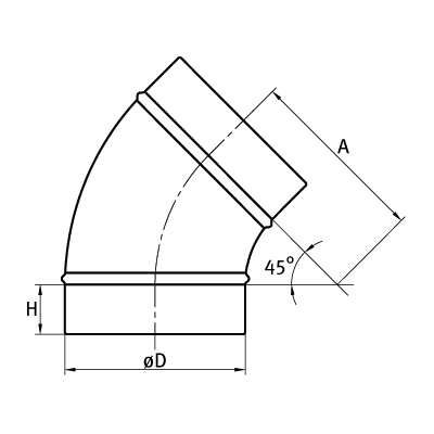 Kolano tłoczone z blachy ocynkowanej o kącie 45 stopni i średnicy fi = 150mm.