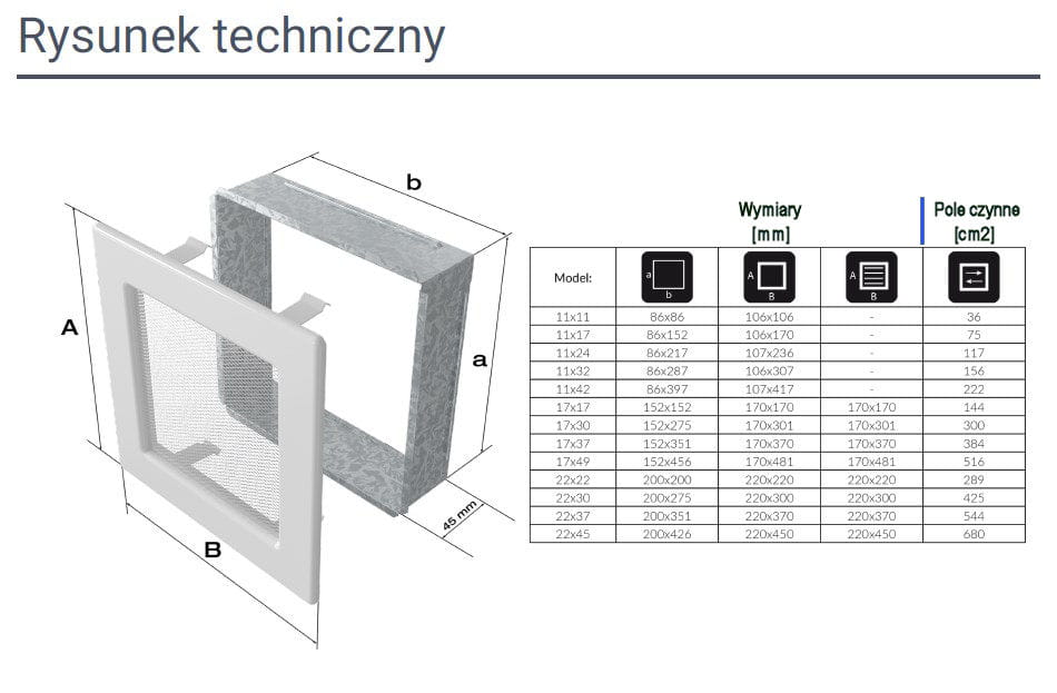 Kratka przeznaczona jedynie do montażu wewnętrznego (brak odporności na zewnętrzne warunki atmosferyczne).