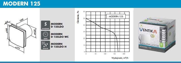 MODERN D 125LDO WC - Dekoracyjne wentylatory osiowe w wersji z wyłącznikiem czasowym, przeznaczone do wentylacji wywiewnej.