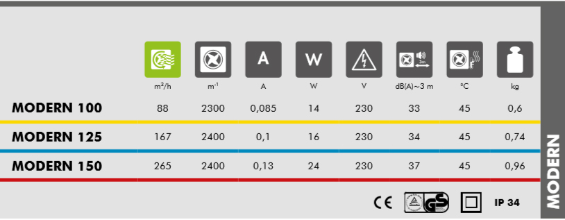 MODERN D 150M - Dekoracyjne wentylatory osiowe w wersji standard, przeznaczone do wentylacji wywiewnej.