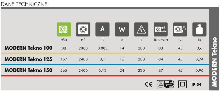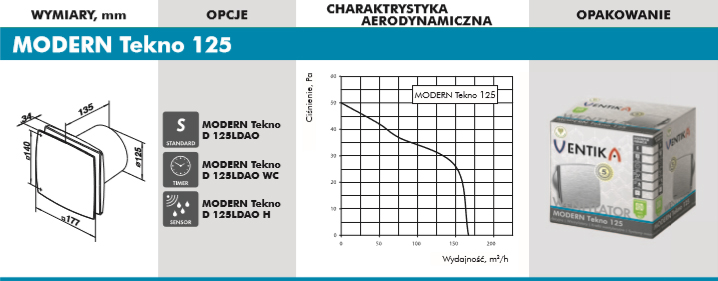 MODERN Tekno D 125LDAO H - Dekoracyjne wentylatory osiowe w wersji z higrostatem i wyłącznikiem czasowym przeznaczone do wentylacji wywiewnej.