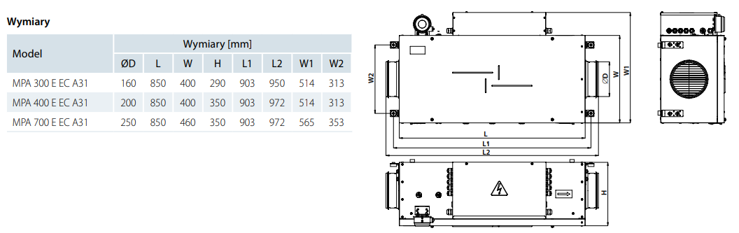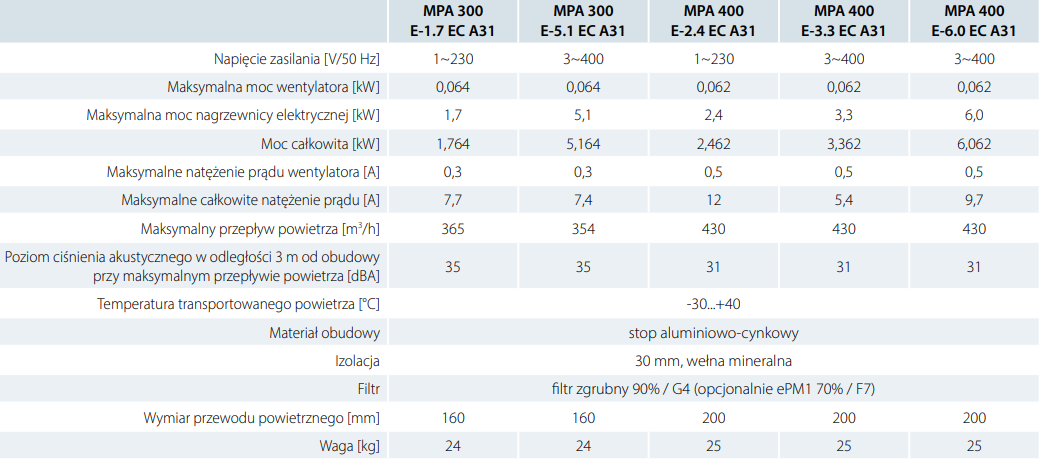 MPA 300 E-5,1 EC A31 - centrala nawiewna z nagrzewnicą elektryczną