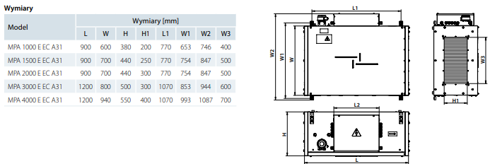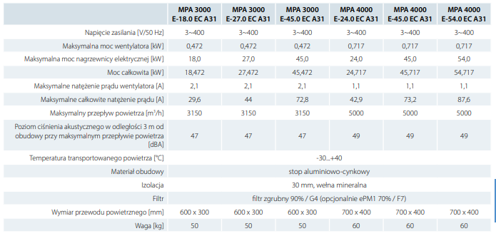 MPA 4000 E-54,0 EC A31 - centrala nawiewna z nagrzewnicą elektryczną