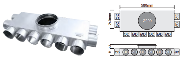 - Wszystkie króćce wyposażone są w przetłoczenia ułatwiające montaż kanału z uszczelką oraz laserowo wycinane blokady wysunięcia kanału.