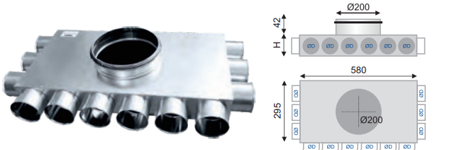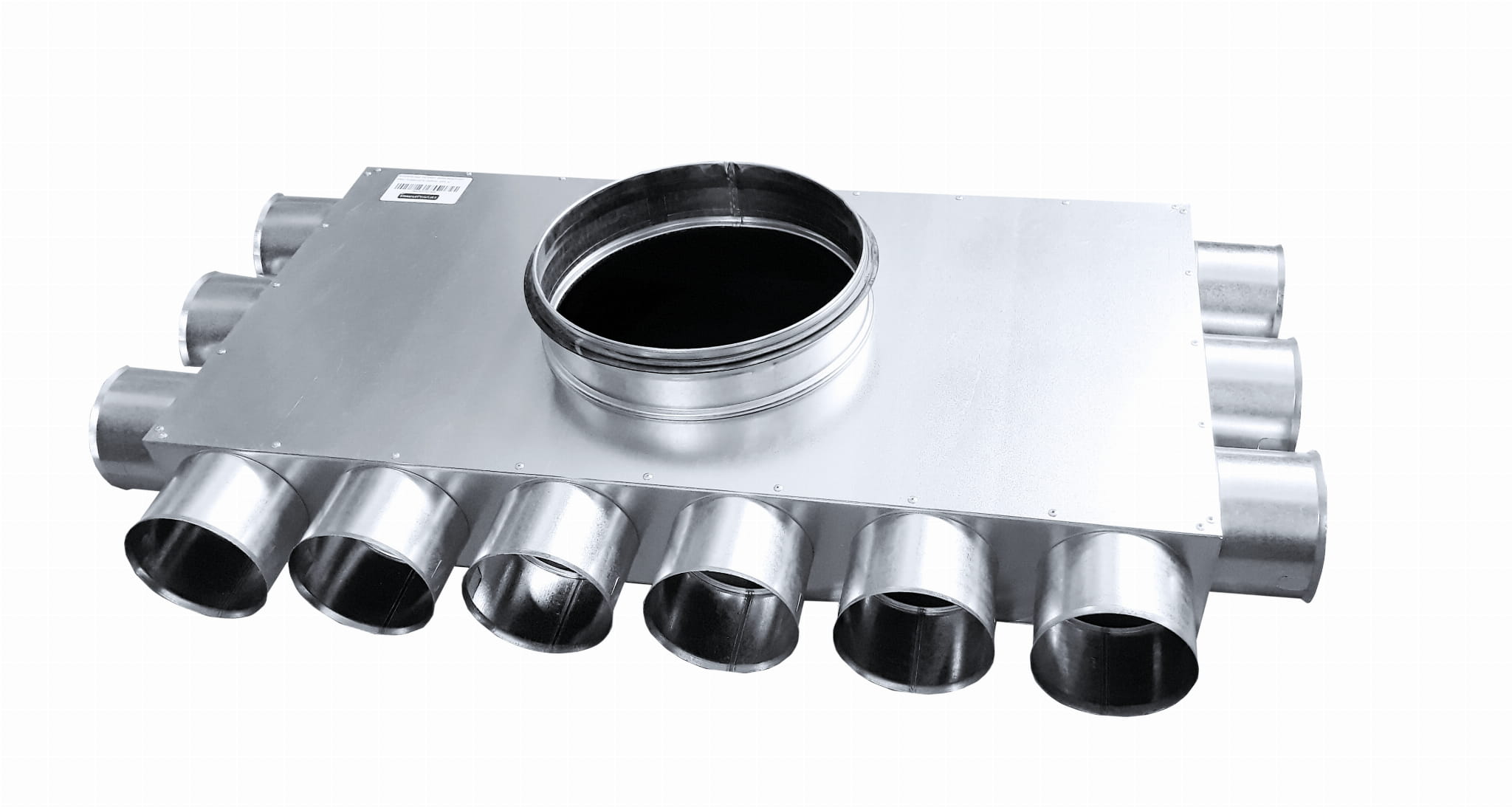 - Wszystkie króćce wyposażone są w przetłoczenia ułatwiające montaż kanału z uszczelką oraz laserowo wycinane blokady wysunięcia kanału.
