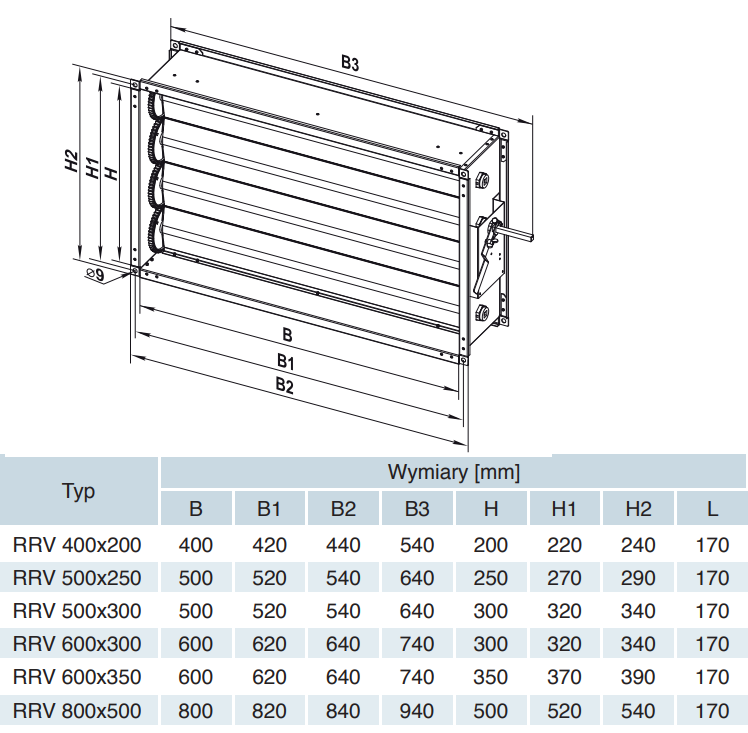 RRV-P800X500-LF230X2 - zestaw przepustnic RRV 800x500