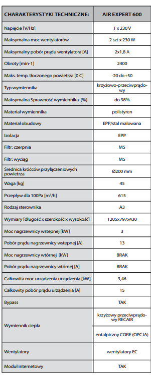 Rekuperator AIR EXPERT H 600 BASIC - DARMOWY TRANSPORT!