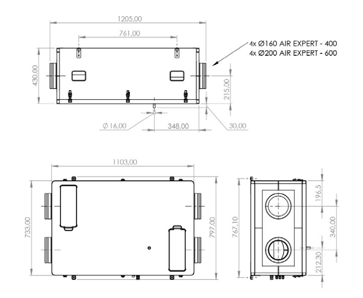Rekuperator AIR EXPERT 600 BASIC to kompletne urządzenie wentylacyjne z poziomym układem króćców służące do wentylacji domów jednorodzinnych lub obiektów usługowych. Charakteryzuje się wydajnością do 680m3/h.