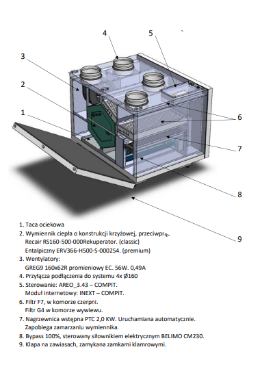 - 8. Kwestie związane z konserwacją: Regularnie sprawdzaj stan techniczny rekuperatora i jego podzespołów, aby zapewnić jego prawidłowe i bezpieczne działanie.