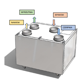 - WENTYLATORY – zastosowane zostały silniki elektro komutatorowe prądu stałego (EC) renomowanej firmy ZILABEG, EBM, ROSENBERG z technologią CONSTANT FLOW, dzięki której centrala utrzymuje stały zadany wydatek powietrza, dające gwarancję niezawodności oraz energooszczędnej cichej pracy. Wyposażone w zewnętrzny wirnik i wygięte do przodu łopatki. Silniki EC zapewniają wysoką wydajność i regulację w pełnym zakresie prędkości obrotowej wentylatora.