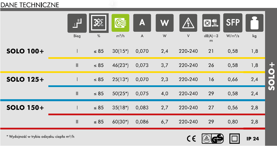 SOLO 150+ Urządzenie wentylacyjne do pojedynczych pomieszczeń
