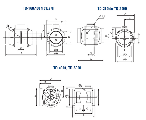 Oryginalna konstrukcja umożliwia konserwacje bez konieczności demontażu kanałów wentylacyjnych. Gama wentylatorów TD obejmuje: