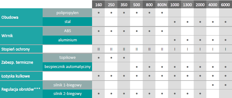 *** nie dotyczy modeli TD-T - występują one jedynie w wersji jedobiegowej, bez możliwości regulacji obrotów