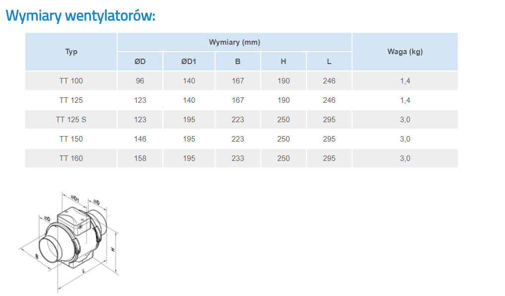 Wentylatory kanałowe o przepływie mieszanym serii TT wykorzystywane są w nawiewno-wywiewnych systemach wentylacji, które potrzebują stosunkowo niewysokiego sprężu, silnego strumienia powierza oraz niskiego poziomu hałasu. Dzięki obudowie z plastiku ABS, wentylatory nie ulegają korozji. Są znakomitym rozwiązaniem do instalacji wentylacyjnych budynków indywidualnych, zbiorowego zamieszkania oraz użyteczności publicznej. W jednym systemie możliwe jest równoległe lub szeregowe zainstalowanie pary wentylatorów. Ma to na celu zwiększenie wydajności lub podwyższenie ciśnienia. Wentylatory przystosowane są do transportu powietrza o temp. do + 60ºC. Dedykowane są do kanałów wentylacyjnych o średnicach: 100, 125, 150, 160, 200, 250, 315 mm.