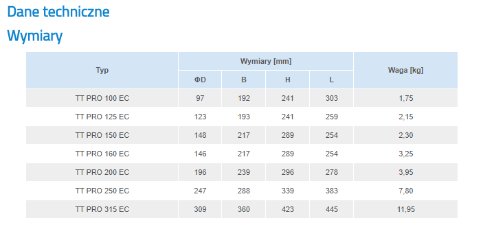 Wentylatory kanałowe o przepływie mieszanym serii TT PRO wykorzystywane są w nawiewno-wywiewnych systemach wentylacji, które wymagają stosunkowo wysokiego sprężu, silnego strumienia powietrza oraz niskiego poziomu hałasu. Zastosowanie silników EC redukuje zużycie energii o 35%. Są znakomitym rozwiązaniem do instalacji budynków indywidualnych, zbiorowego zamieszkania oraz użyteczności publicznej. Wentylatory przystosowane są do transportu powietrza o temperaturze +55°C. Dedykowane są do kanałów wentylacyjnych o średnicach: 100, 125, 150, 160, 200, 250, 315mm.