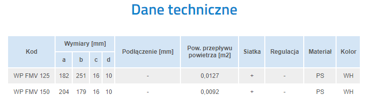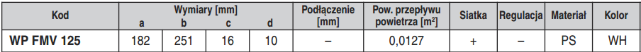 WP FMV 125 - kratka nawiewno-wywiewna