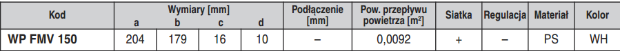 WP FMV 150 - kratka nawiewno-wywiewna