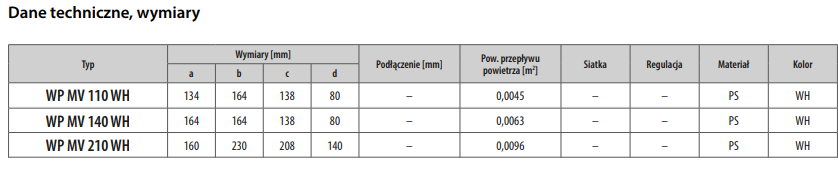 WP MV 140 WH- kratka nawiewno-wywiewna z kołnierzem prostokątnym