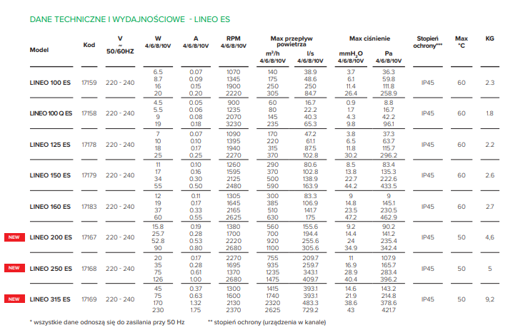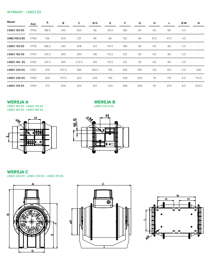 Wentylator LINEO 315 ES - silnik EC